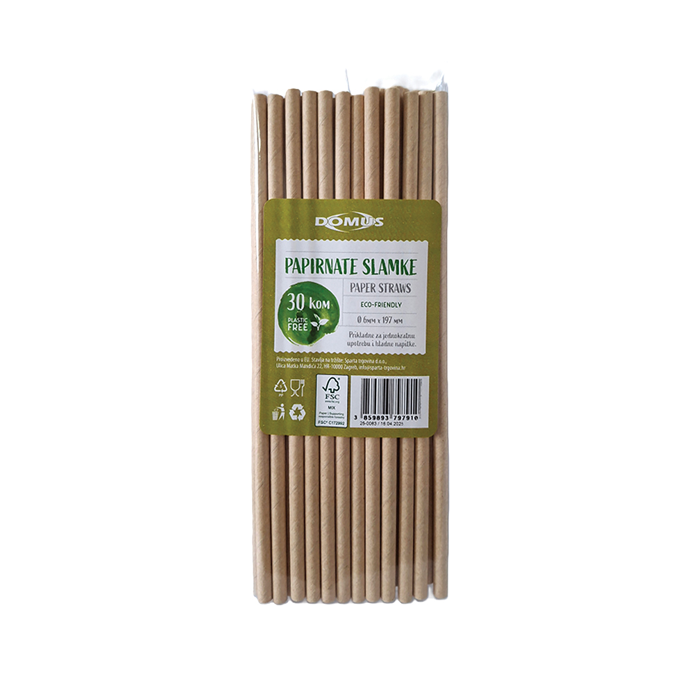 Papirnate slamke izrađene su od kvalitetnog papira pogodnog za kontakt s pićem. Čvrste su, praktične i prikladne za hladne napitke, a nakon uporabe predstavljaju ekološki prihvatljiviju alternativu plastičnim slamkama za jednokratnu uporabu.